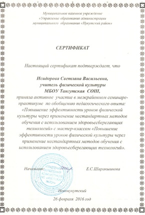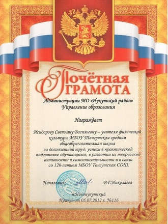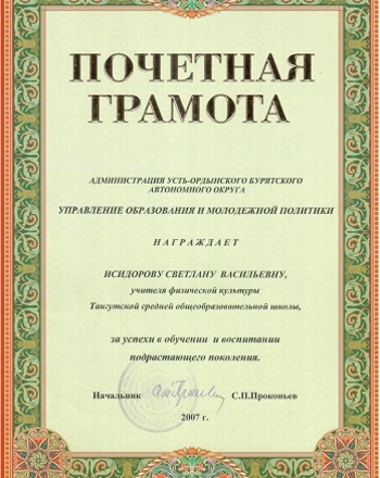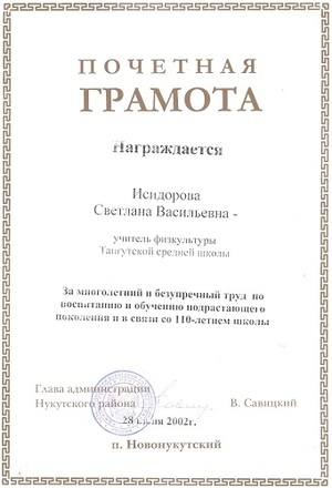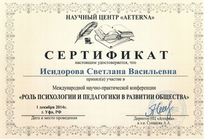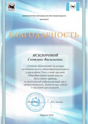 Исидоровой Светланы Васильевны